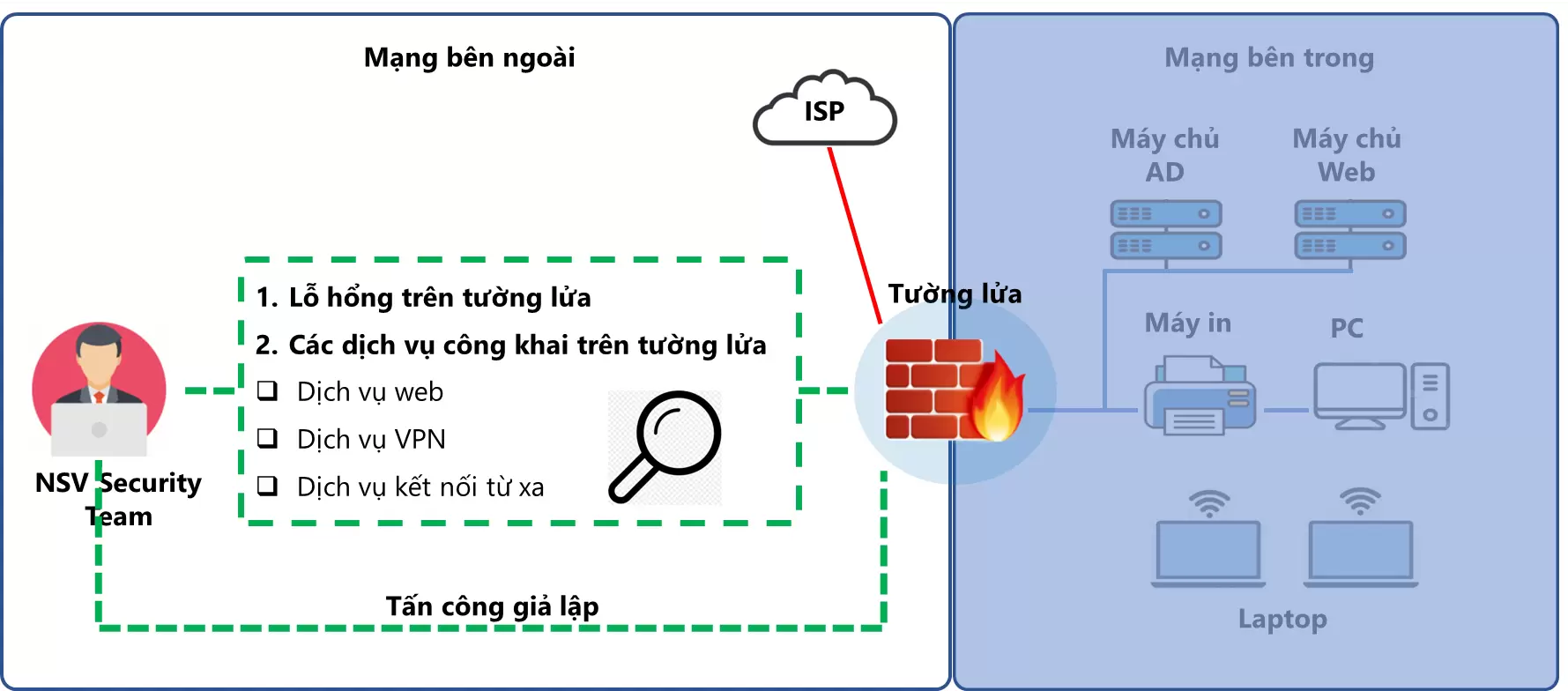 Hệ thống mạng giúp cho doanh nghiệp kết nối và hoạt động hiệu quả, vì vậy luôn cần bảo đảm an toàn. Kiến trúc mạng cần được tổ chức và thiết lập sao cho đảm bảo khả năng vận hành tốt và có tính bảo mật cao. Điều này bao gồm việc giám sát thường xuyên các hoạt động trên mạng, phát hiện các mối đe dọa tiềm ẩn có thể đến từ cả bên trong và ngoài mạng.