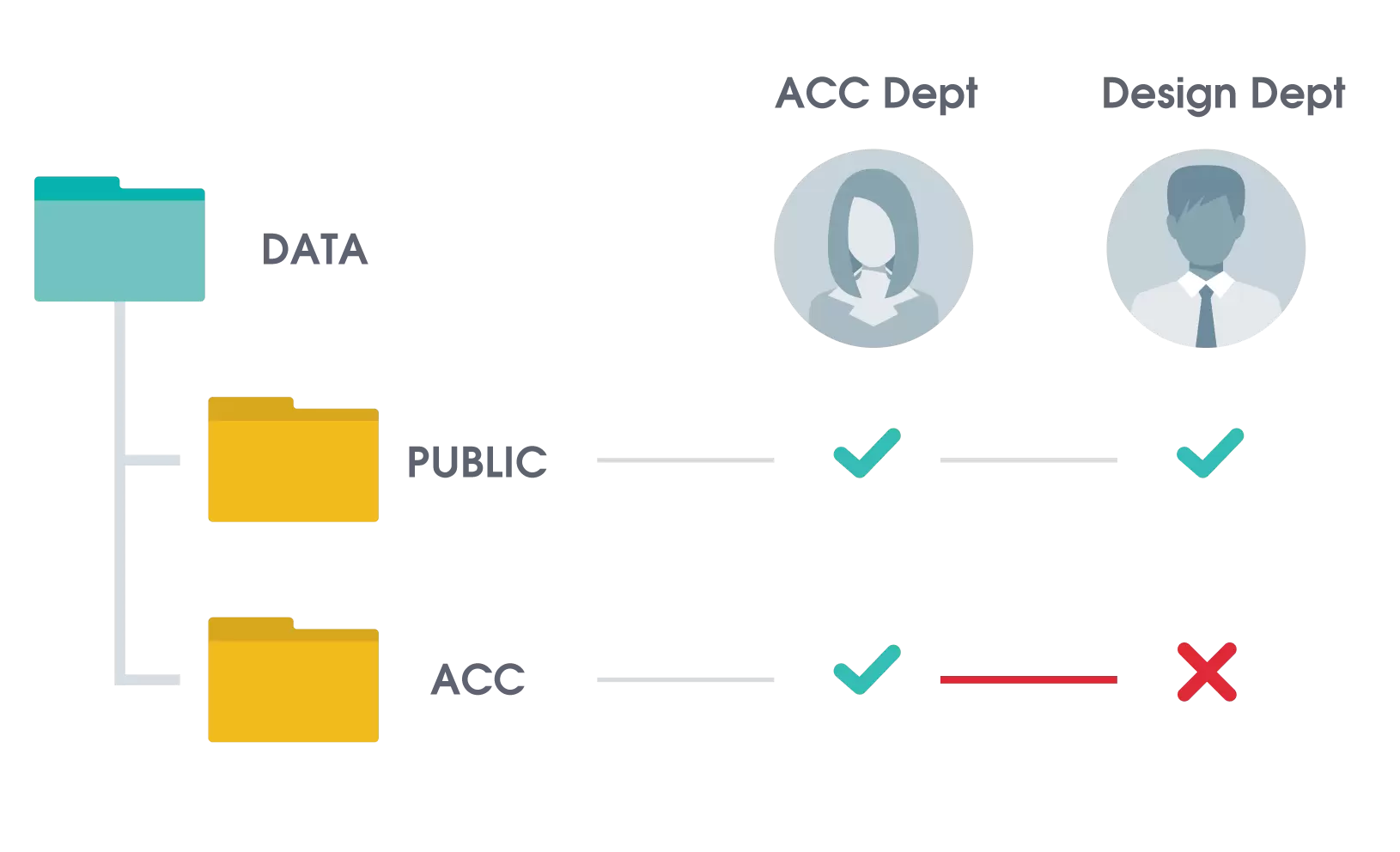 Nhìn vào bảng phân quyền ta có thể thấy Nguyễn Trâm và Phạm Trang thuộc bộ phận kế toán thì có thể truy cập và chỉnh sửa dữ liệu trong thư mục ACC. Nguyễn Tuấn thuộc bộ phận thiết kế thì không thể truy cập được vào thư mục ACC có chứa các dữ liệu kế toán.