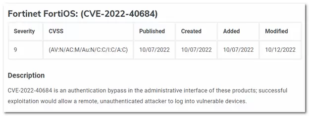 Fortinet has released emergency security patches for the CVE‑2022‑40684 vulnerability on FortiGate firewall devices