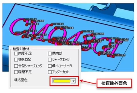 Enhanced change detection function: Accuracy in detecting thick parts has been improved. Filtering settings allow users to hide detection results for small surfaces and display shaded measurement values for better visibility, making it easier to identify problematic areas.