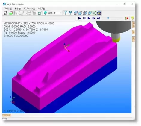 - CAM-TOOL 3+2 trục gồm các thuật toán tạo đường chạy dao hiệu quả, tối ưu hóa chuyển động của dao cụ và giảm thiểu tối đa các chuyển động cắt không cần thiết. Các tối ưu hóa như “Mô phỏng gia công (Animation)” bao gồm hiển thị các vùng undercut và “Xóa đường dao chạy không (Delete air-cut)” bằng cách gia công từ nhiều hướng, giúp có thể cung cấp dữ liệu gia công hiệu quả và có độ tin cậy cao. Điều này giúp giảm thời gian gia công và cải thiện năng suất sản xuất.